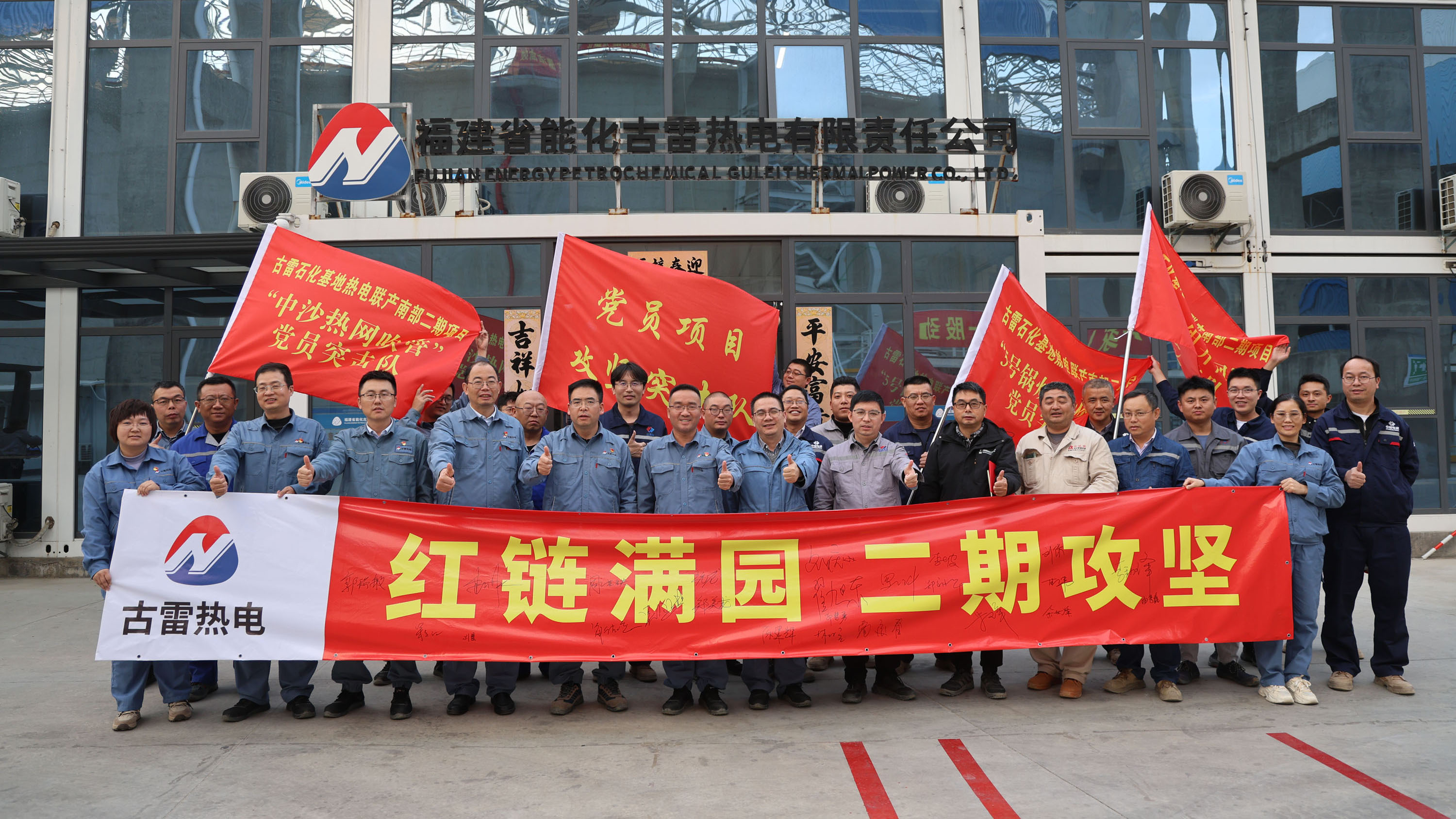 古雷热电党总支书记、执行董事周谟铁指出,当前古雷石化基地热电联产南部二期项目已进入决战决胜的关键阶段,施工横跨春节,任务重、交叉多、挑战大,必须以“红链满园”链上党建为引领,把各参建单位拧成一股绳,把党组织的战斗堡垒作用和党员先锋模范作用转化为攻坚克难的强大合力。他强调,要深化“党建+”融合机制,以“党建+破解难题”为抓手,坚持问题导向,鼓励创造性工作;以“党建+高效协同”为牵引,坚持目标导向,牢固树立“一家人、一条心、一个目标、一股劲”的协同理念;以“党建+担当作为”为保障,坚持结果导向,强化使命必达的决心。全体突击队员要亮身份、扛责任,做到“任务清晰、状态清楚、问题清明”,坚决落实“问题不过夜、解决在当场”;要严守安全底线、筑牢质量根基,确保关键节点既“面子”达标,更“里子”过硬。