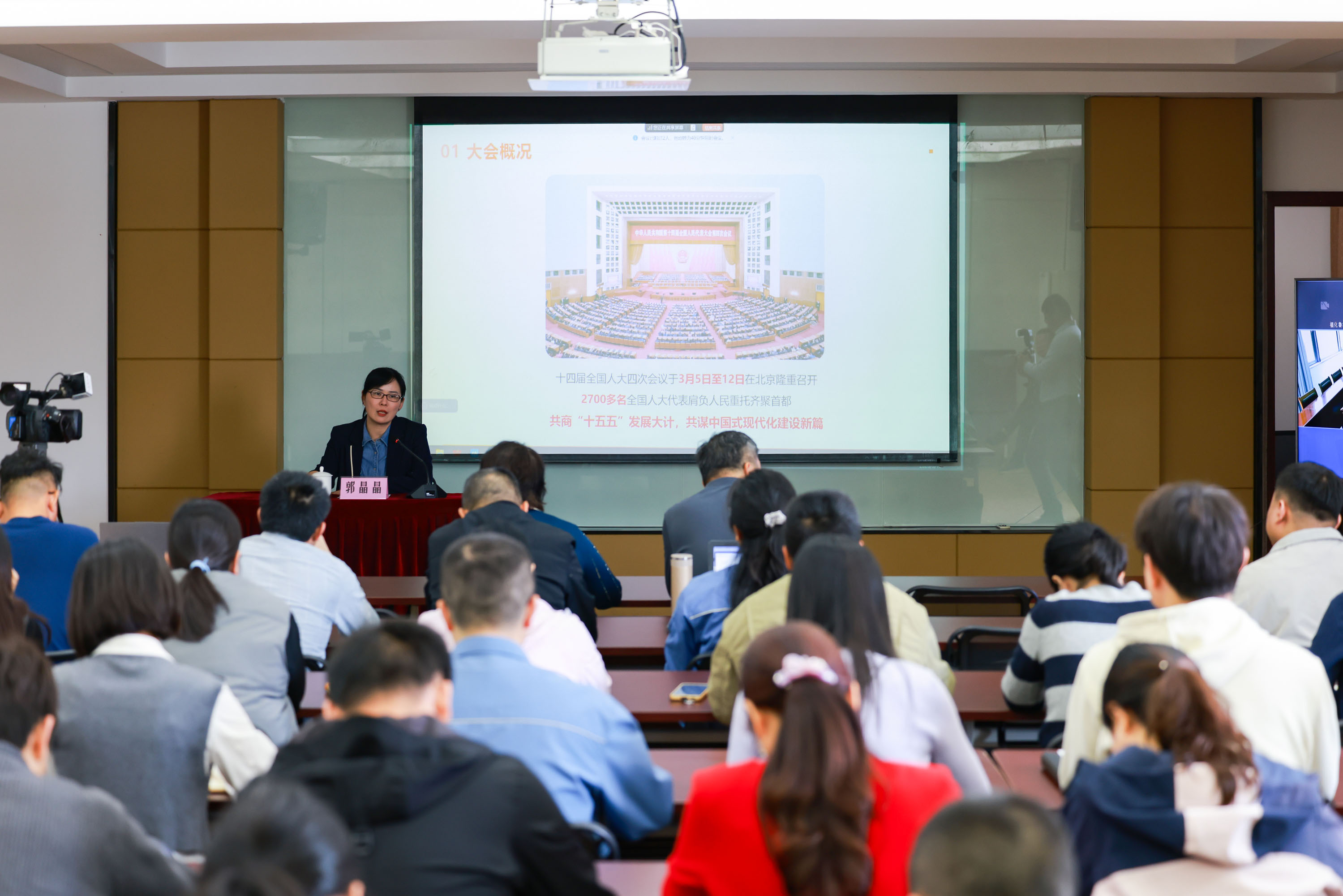 为深入学习贯彻2026年全国两会精神,福化古雷于3月18日召开十四届全国人大四次会议精神宣贯会议,全国人大代表、福化古雷党群人资部(宣传办公室)主任郭晶晶为8家企业的干部职工作专题宣讲。